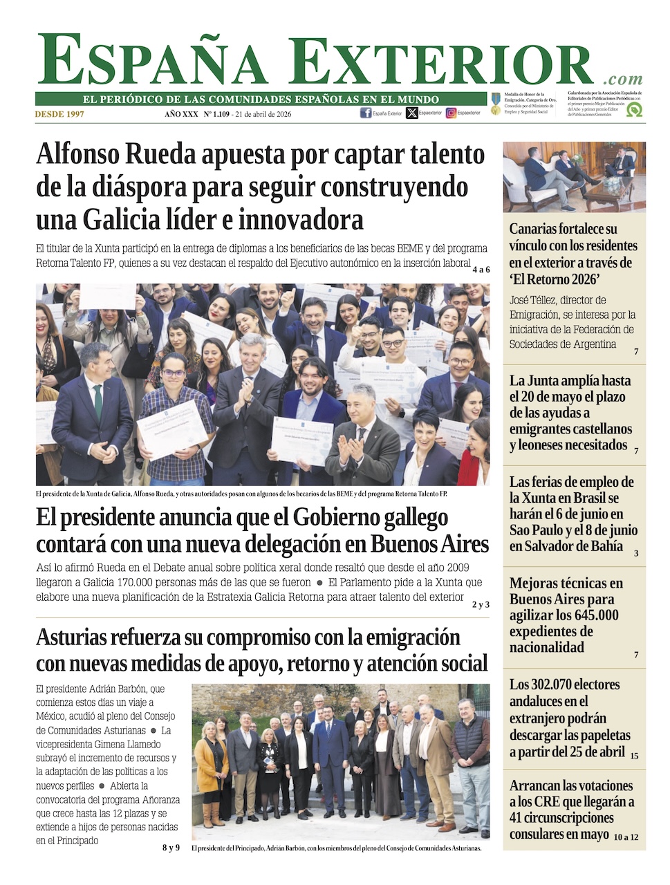 Animó a la colectividad asturiana en el país a seguir siendo “los mejores portavoces de Asturias” y “portadores de un sueño compartido que une a quienes viven allí y a quienes aman Asturias desde aquí”